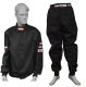 Gear up for the race with the "Racerdirect Racing 2-Piece Suit SFI 3.2A/1," a top-tier racing suit designed for both safety and comfort. Crafted from flame-resistant cotton, this black two-piece suit is light and breathable until faced with high heat. Each piece exceeds SFI testing standards with Nomex zippers, thread, and cuffs. The jacket offers a flexible pleated back for enhanced mobility and an elastic hem for a snug fit, along with a Velcro-secured collar. The pants feature an elastic waistband for comfort during seated positions, secured by a Velcro strip. Both the jacket and pants proudly display the SFI 3.2A/1 tag, Racer Direct logo, and the American Flag. This racing suit is engineered specifically for racing environments, ensuring you meet SFI regulations while enjoying optimal comfort and flexibility. Backed by a one-year warranty from the date of purchase, this suit is your reliable partner on the track.